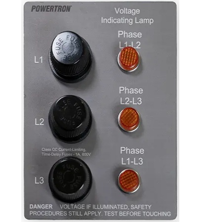 - Ensure voltage is present with a straight forward pilot light indicator panel.