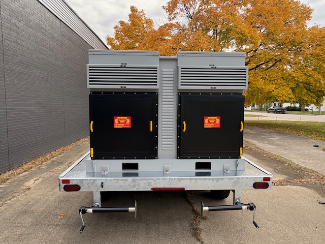 Our Universal R1250H Trailer-Mounted Resistive Load Bank Package offers a ULB 1250kW load bank, our heavy-duty trailer, our two cable reels with reel covers, and two 50ft cable sets.